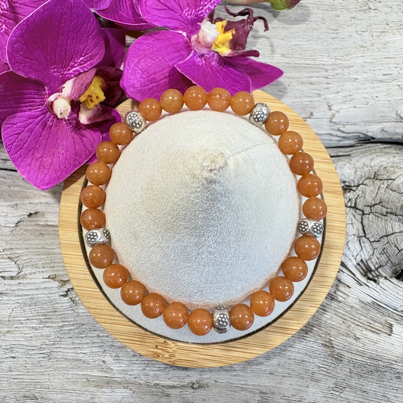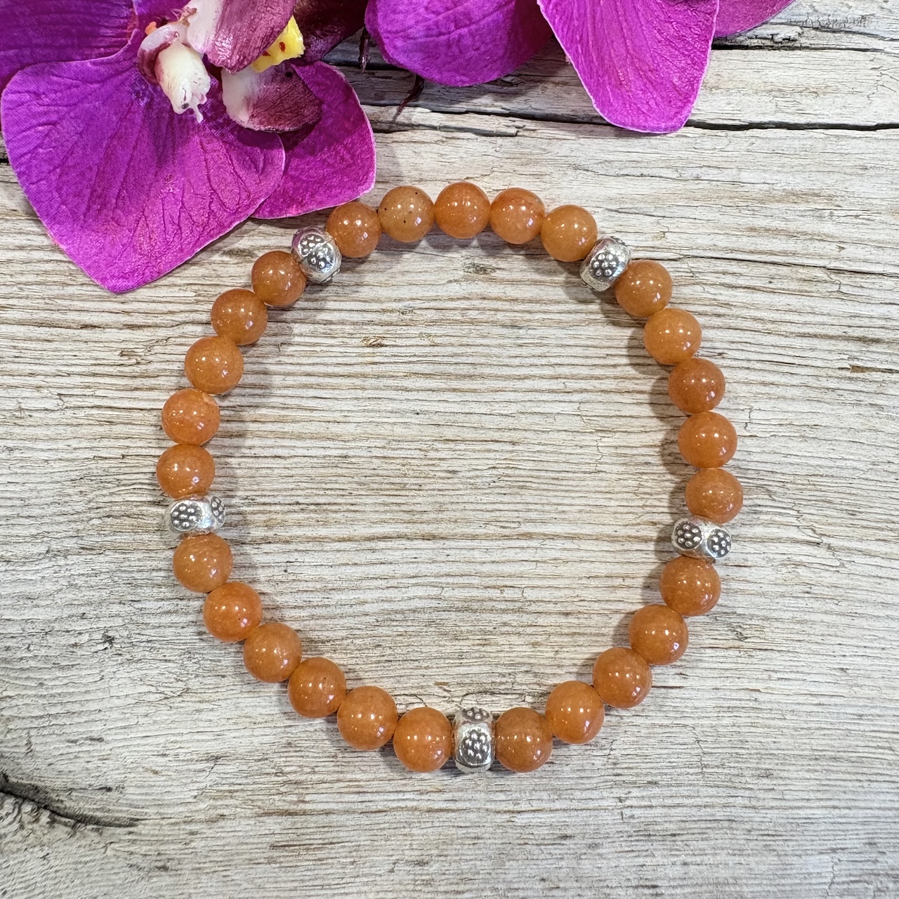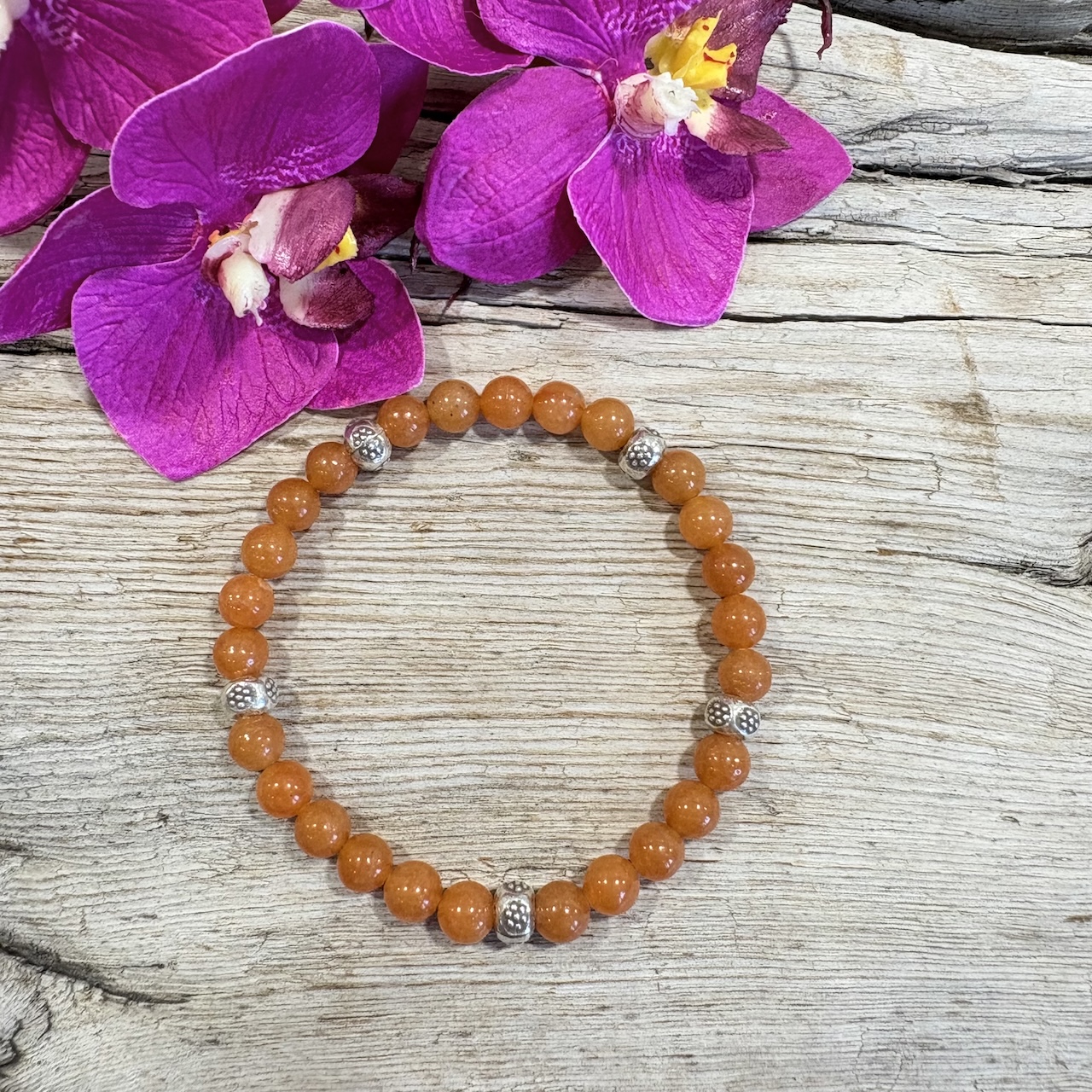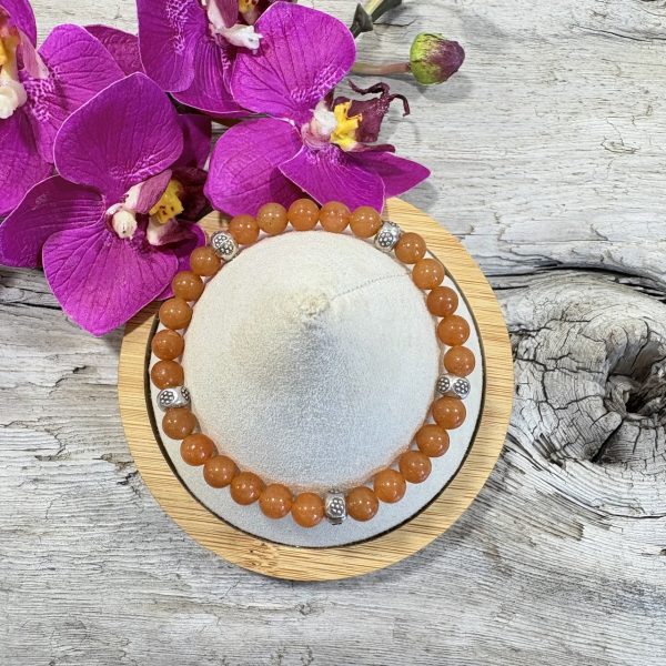 Ce bracelet Aventurine Orange naturelle se porte seul ou accompagné d’autres bracelets. Sa couleur orangé acidulée associée à des perles d’argent 925 habillera votre poignet de façon discrète et raffinée. J’ai apporté le plus grand soin dans la sélection des perles d’Aventurine Orange en provenance d’Inde et de Grade AAA. Les perles en argent sont réalisées manuellement par des artisans thaïlandais. Ce Bracelet saura vous ravir par sa gaieté et ses propriétés qui vous permettront d’allier esthétique et bien-être.